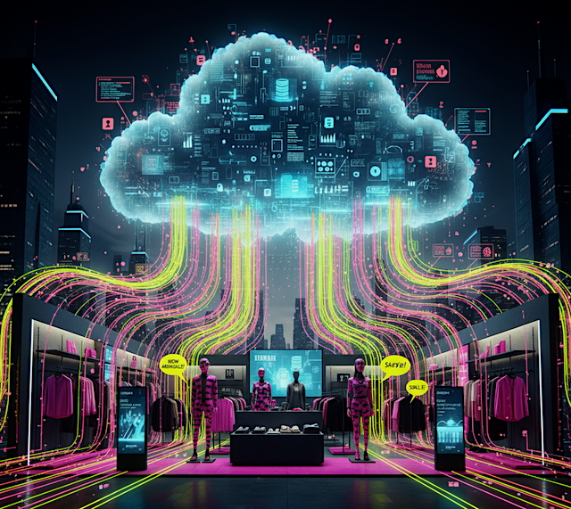 具体的には、デジタルサイネージ上におすすめ商品とともにQRコードを表示し、店舗にないサイズや色などをECサイトから購入できるようにする。さらに、その在庫情報をリアルタイムにサイネージへ表示することで、オンラインでの購買を促すことができる。また「割引券はオンラインで!」と促し、店内や店頭で顧客自らがスマホで割引券をオンラインから取得する際に会員登録を条件として顧客化し、そこで得た属性や購買履歴などの情報をもとに、さらにOne to Oneマーケティングへと進化させる。